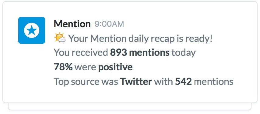 Mention is a media monitoring tool that observes & monitors anything that’s being said about your company. Their fairly new Slack integration is great for both marketers and SEO people. It sends you a Slack notification as soon as your brand or competitor is mentioned online. The Mention Slack integration also allows you to receive daily recaps of brand mentions and, on top of that, it helps you identify and discover influencers. As an SEO expert, you want to know when and how your brand gets mentioned, so you can reach out and ask for a link to your website.