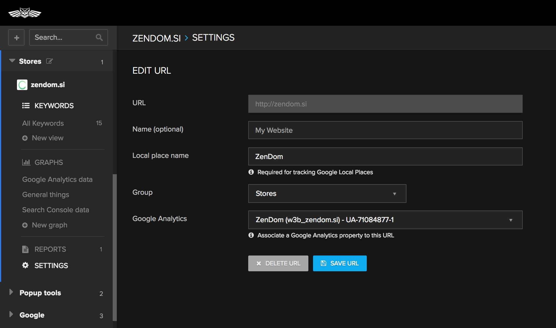 To enable this in Nightwatch, you will need to configure the name of your local place under the website settings: sometimes Google won’t show the URL associated with a particular Google Place, so we need to match it by the name.